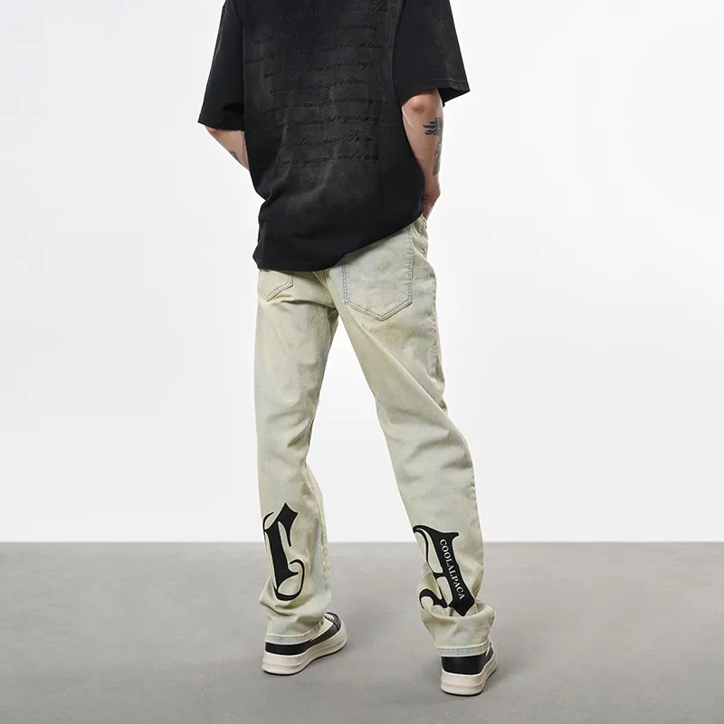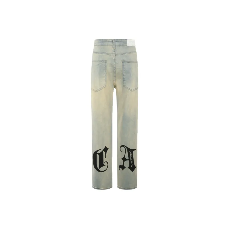 COOLALPACA 옐로우 머드 데님 남녀공용 청바지 - POIZON