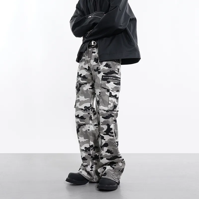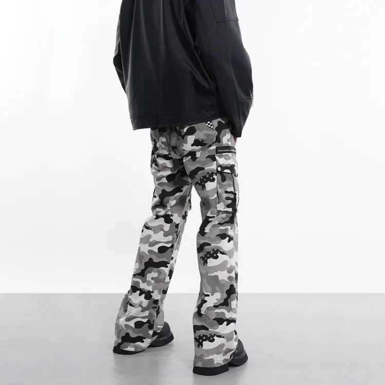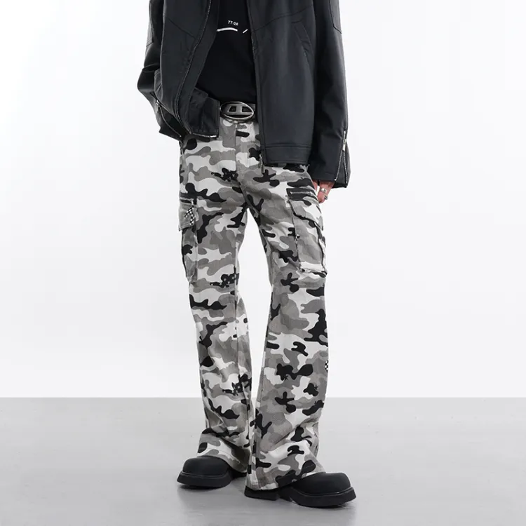 COOLALPACA 루즈핏 부츠컷 캐주얼 팬츠 남녀공용 카모플라주 - POIZON