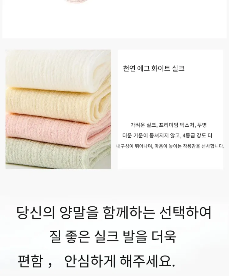 67.8% 비스코스, 22.4% 폴리아미드, 5.3% 엘라스테인, 4.5% 뽕나무 실크