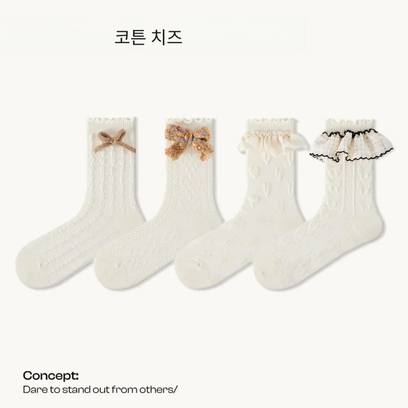 COTTON CHEESE 여성 크루 삭스 - POIZON
