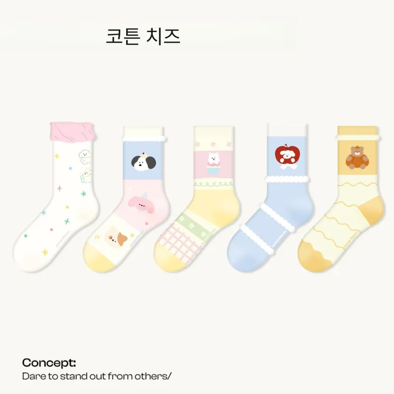COTTON CHEESE 스위트 Wang 밀크 케이크 5쌍 여성 크루 삭스