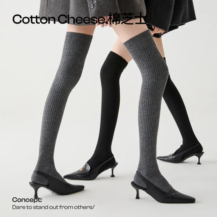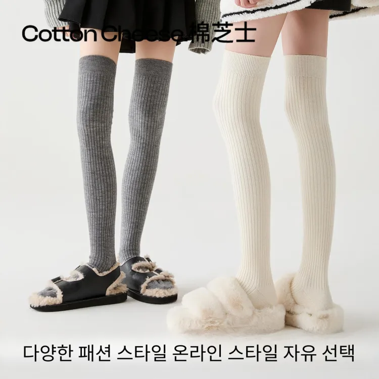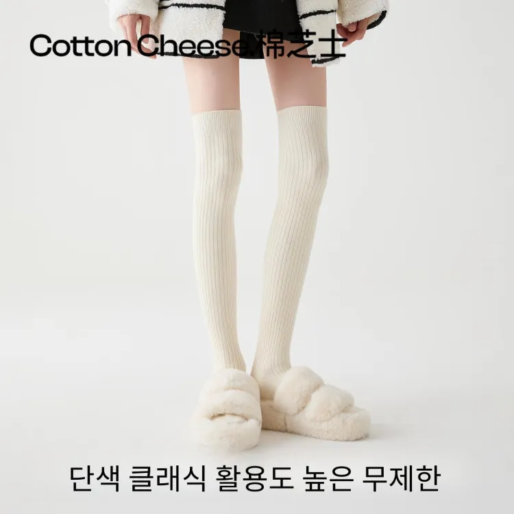 COTTON CHEESE 여성 무릎 양말 - POIZON