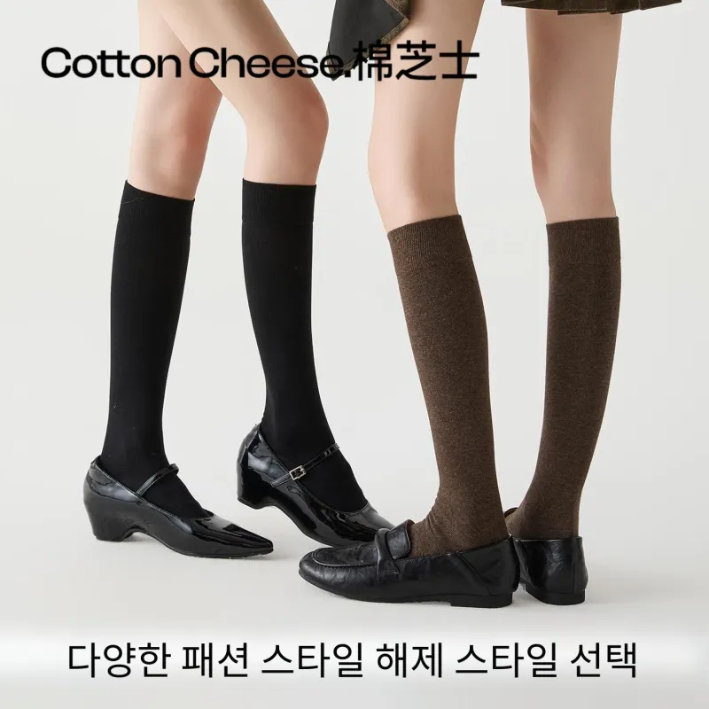 COTTON CHEESE 여성 무릎 양말 - POIZON