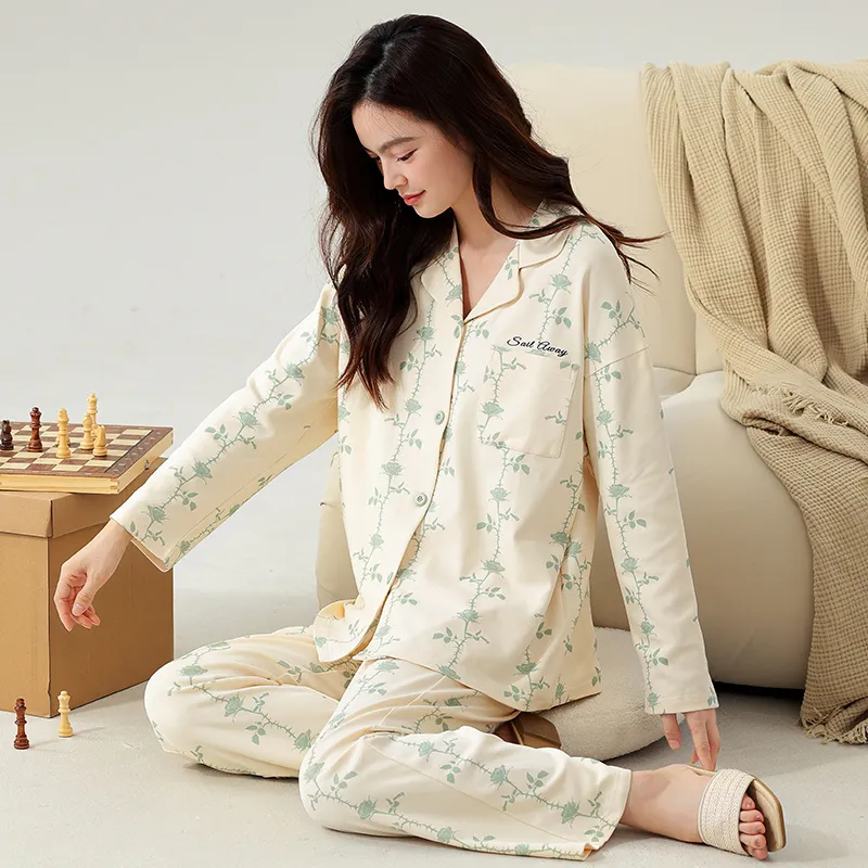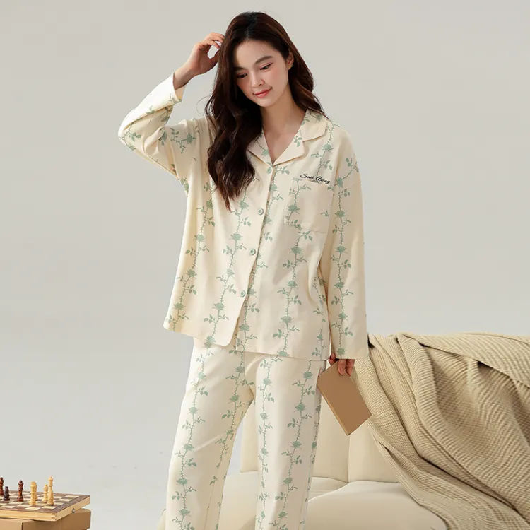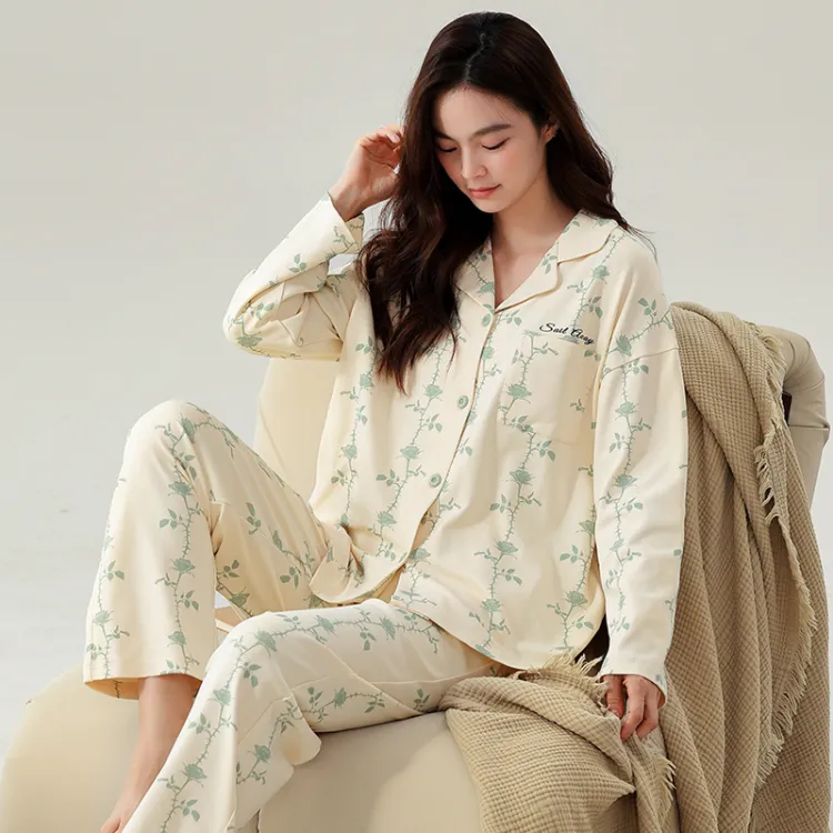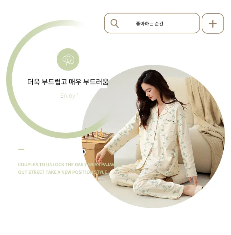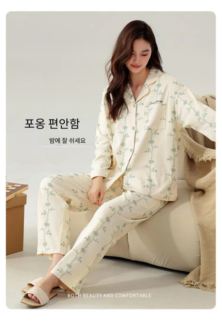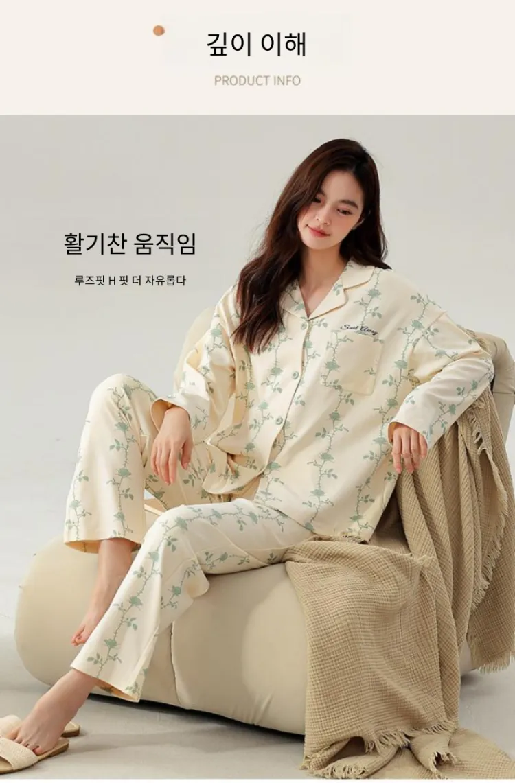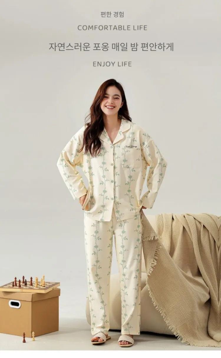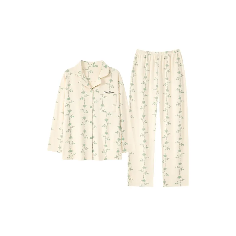 Cotton Gene 아이보리 여성 파자마 세트 - POIZON