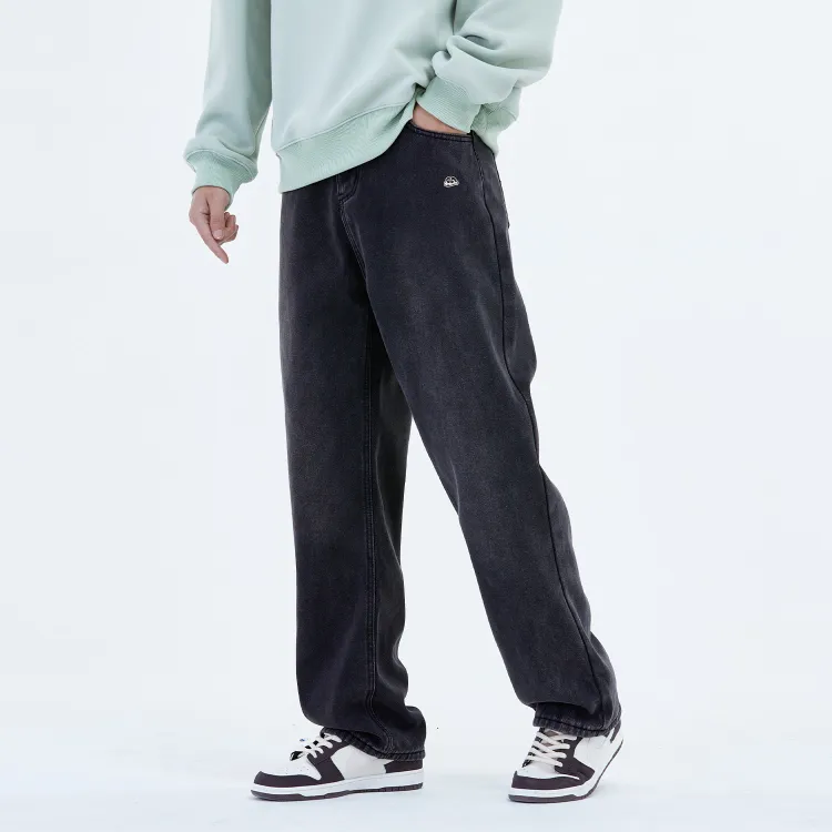 블랙 원단: 60.8% 면, 24.8% 폴리에스터, 14.4% 재생 셀룰로오스 섬유 배색 원단: 66.2% 면, 23.1% 폴리에스터, 10.7% 재생 셀룰로오스 섬유