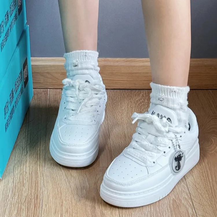 크레용 신짱 x Jifffly 콜라보레이션, 클래식하고 다양한 스타일에 어울리는 더블 Shoelace 커플 퍼피 신발 보온, 미끄럼 방지, 가벼움, 통기성 좋음, 키높이 로우탑 스케이트보드 신발 남녀공용