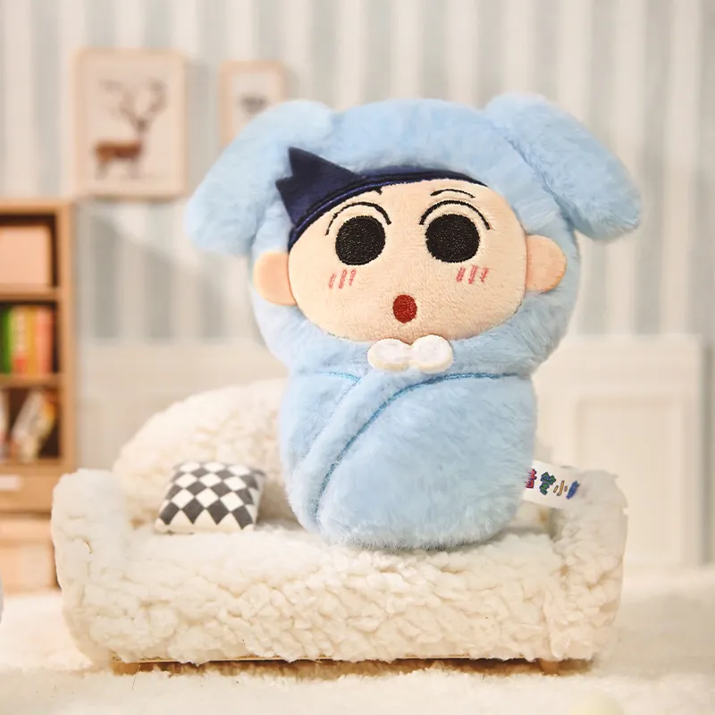 Crooked Melon Production 짱구 수면 가방 베이비 컬렉션 플러시 펜던트 블라인드 박스 싱글 미스터리 선물 포장/전체 박스 6개 - POIZON