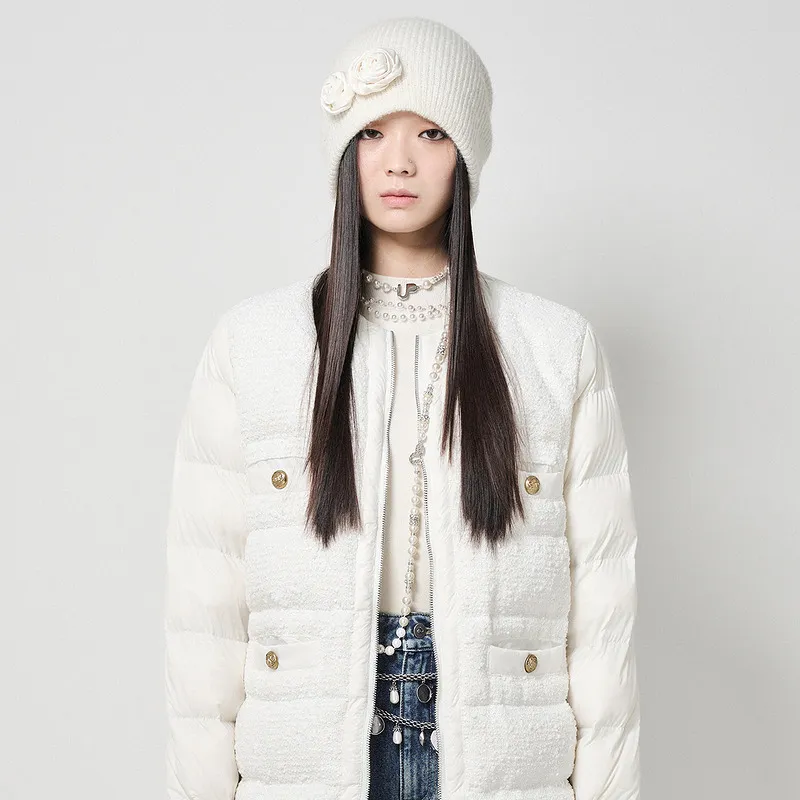 주요 소재: 100% 폴리아미드 부자재: 100% 폴리에스터 충전재: 덕다운 (다운 함량 85%) 안감: 100% 폴리아미드