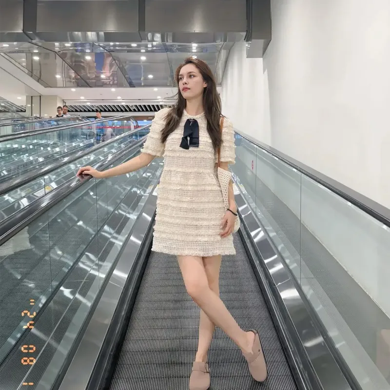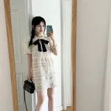 색상:펄 화이트 퍼프 스커트 (포함된 리본 장식 브로치)