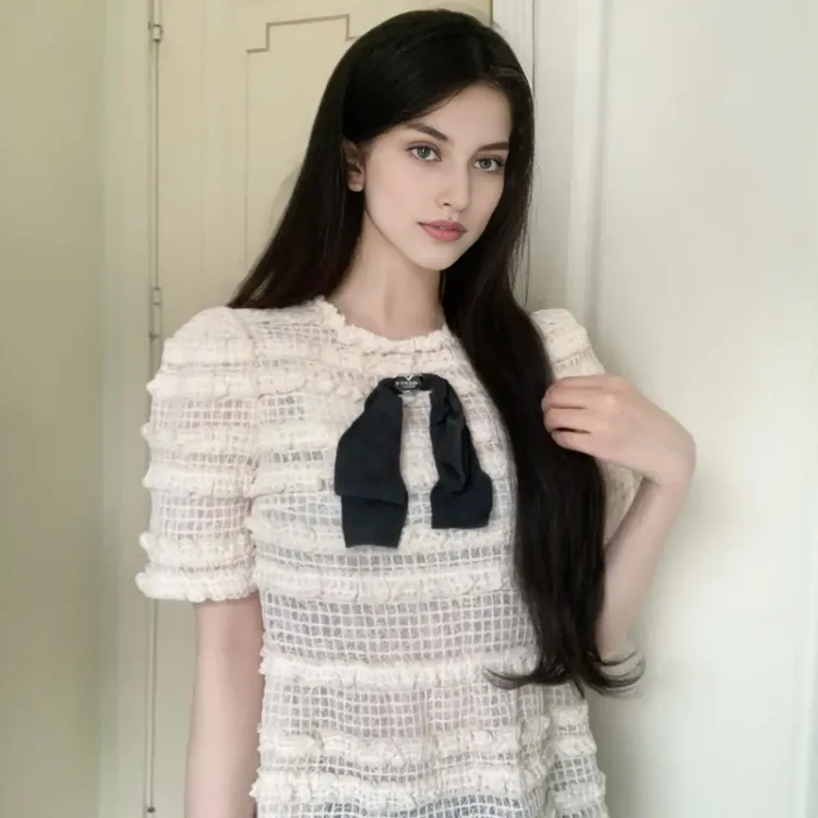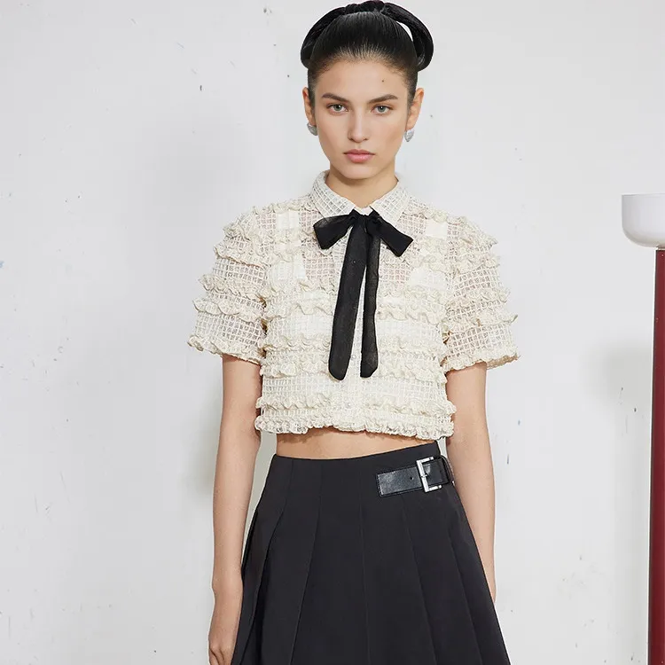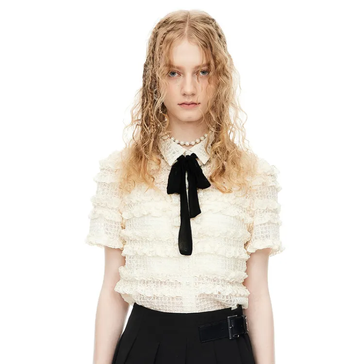 화이트 레이스 상의 (무료 리본 장식 포함)