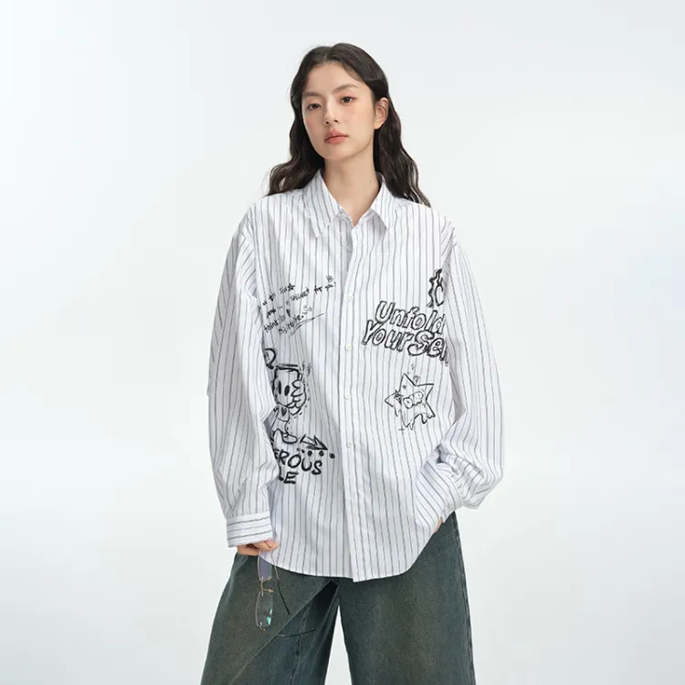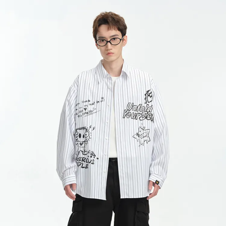 DANGEROUSPEOPLE 스트라이프 패턴 남녀공용 셔츠 - POIZON
