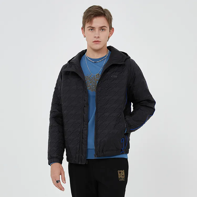 DAVID NAMAN FW22 후드 루즈핏 단목 푸퍼 재킷 남성 블랙 - POIZON