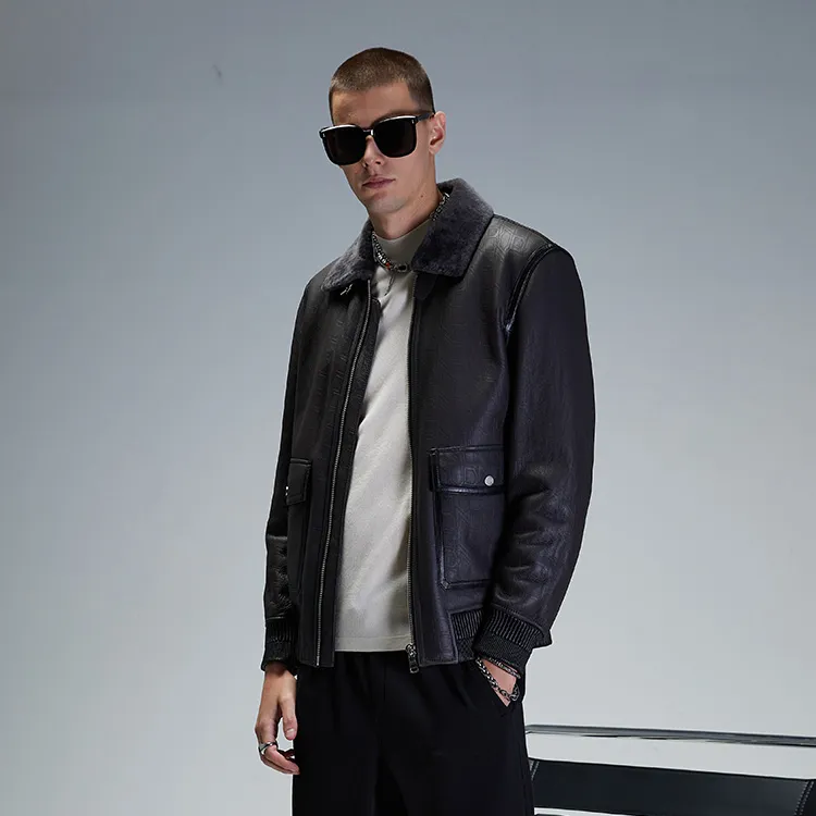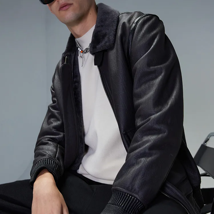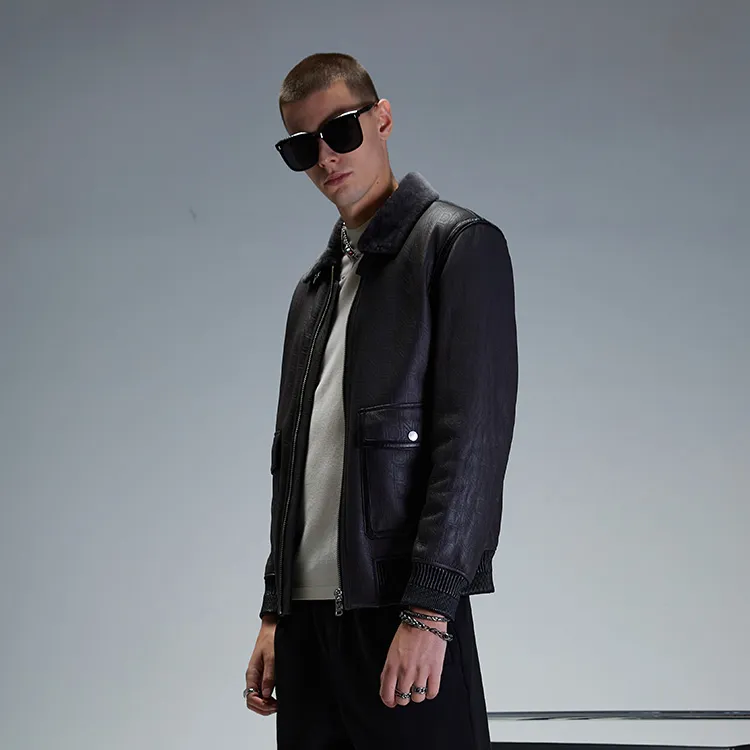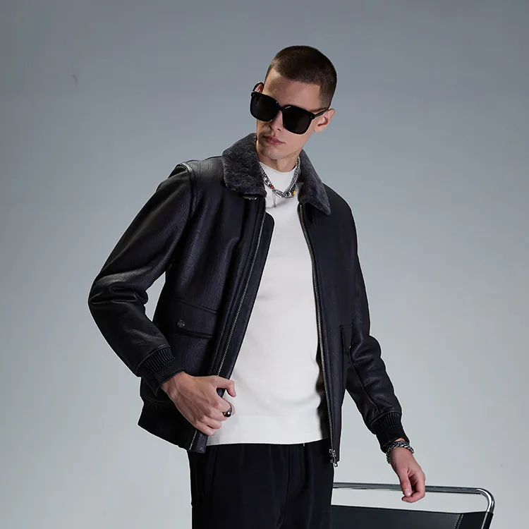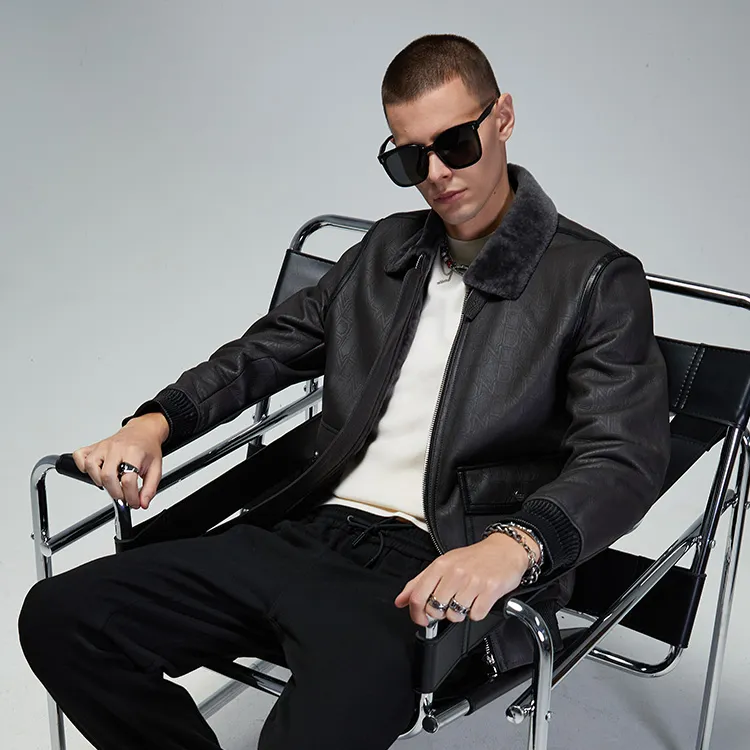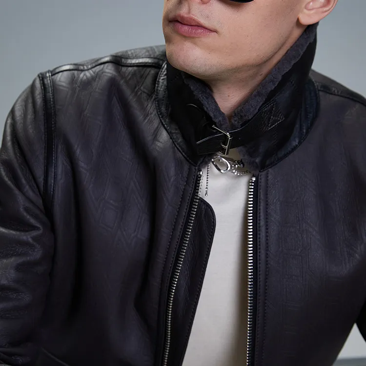 DAVID NAMAN 그레이 남성 가죽 자켓 - POIZON