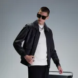 DAVID NAMAN 그레이 남성 가죽 자켓