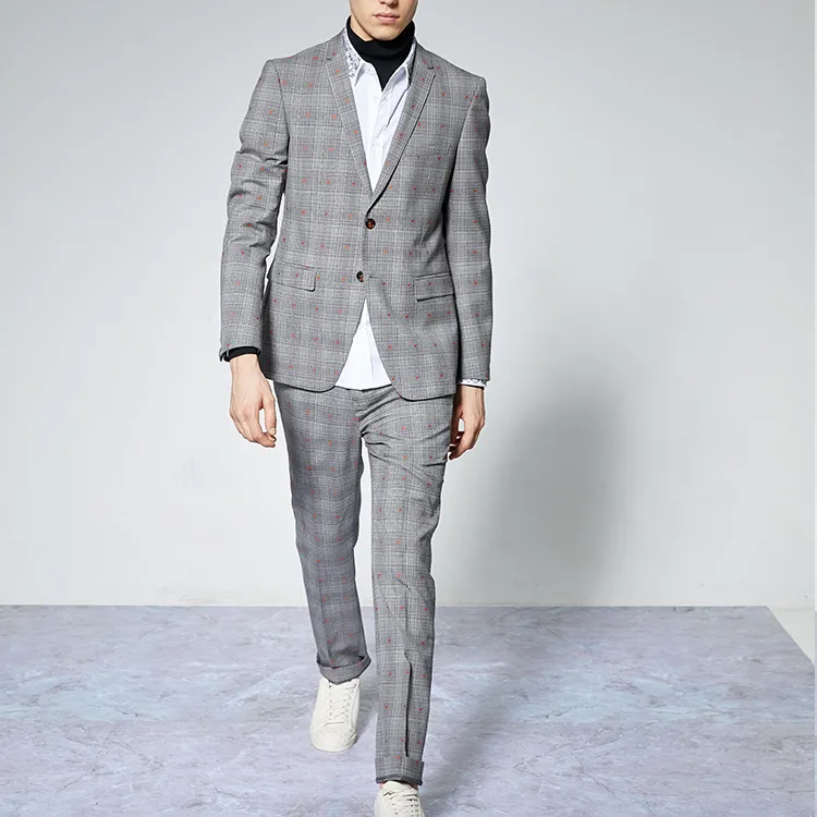 DAVID NAMAN 그레이 체크 남성 정장 바지 - POIZON