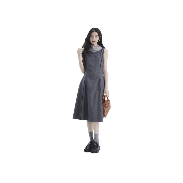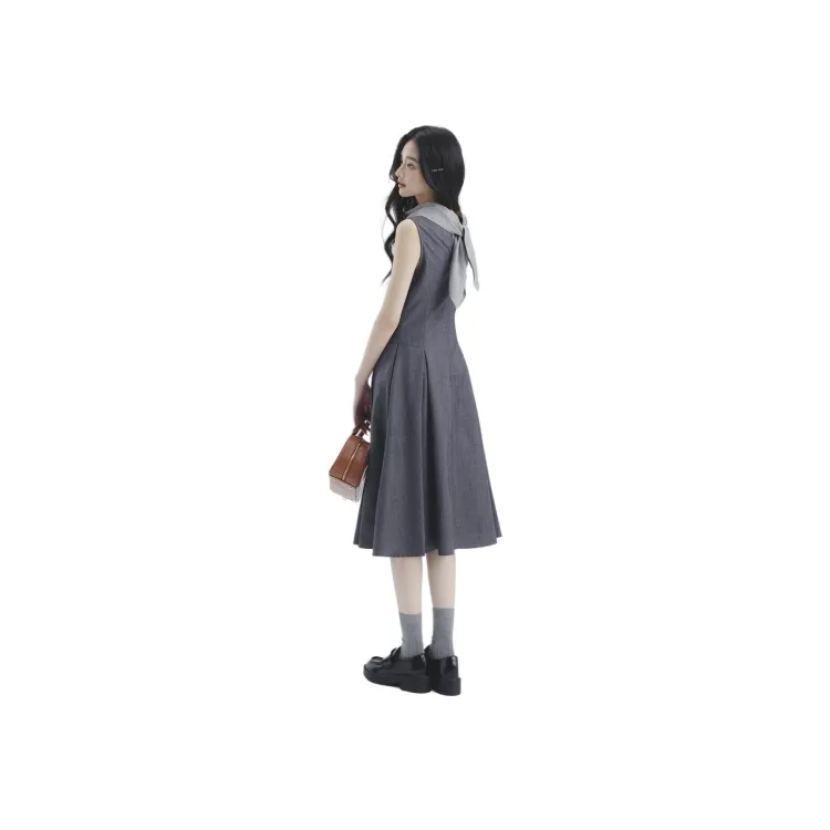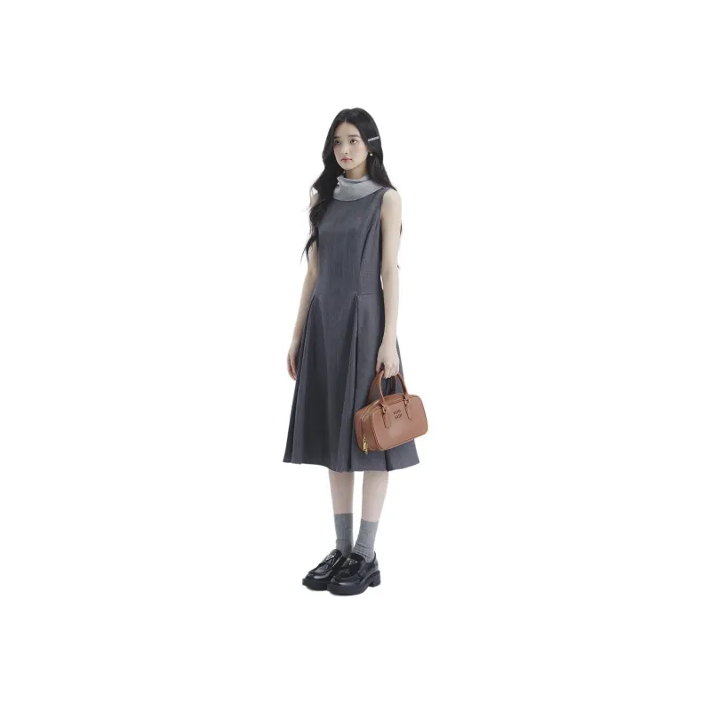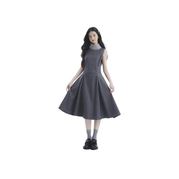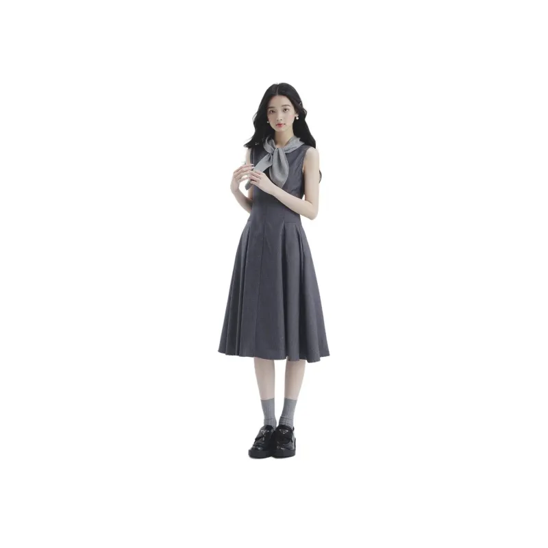 DEAR DEER PUFF 그레이 여성 민소매 원피스 - POIZON