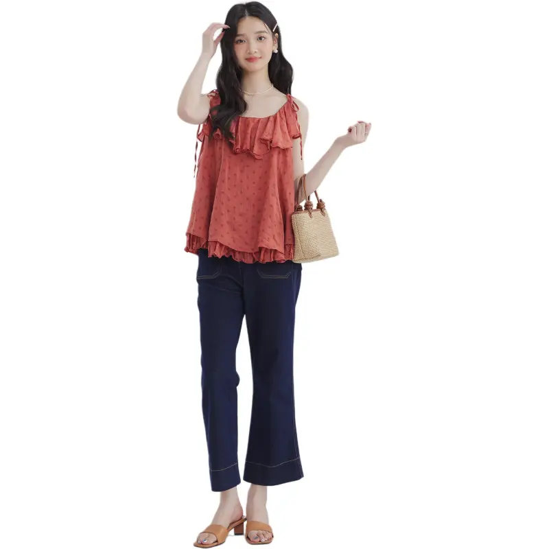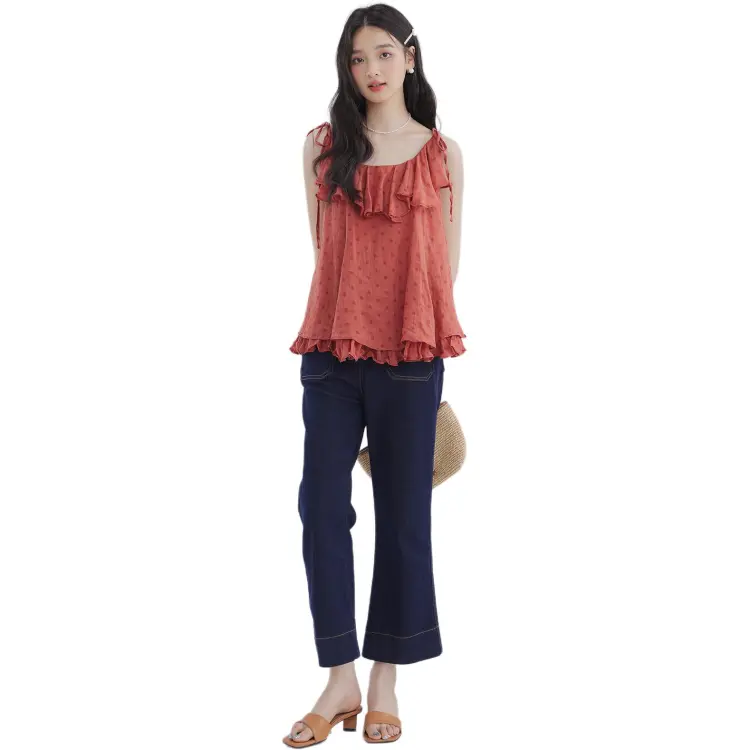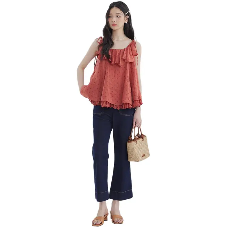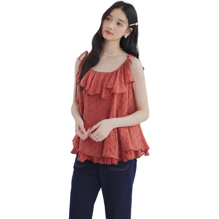 DEAR DEER PUFF 레드 여성 끈 나시 - POIZON