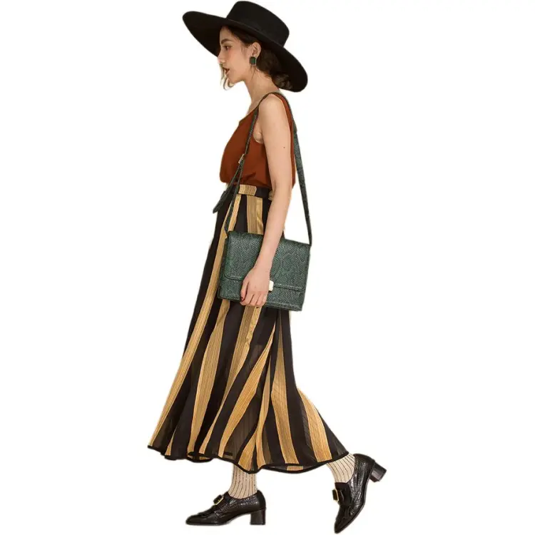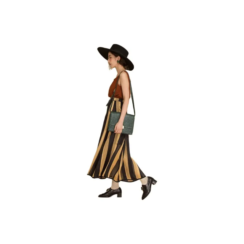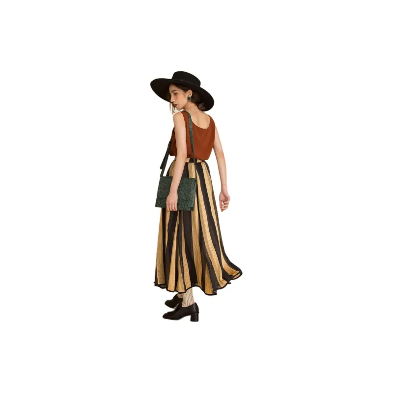 DEAR DEER PUFF 캐주얼 롱 기장 스커트 여성 블랙 - POIZON