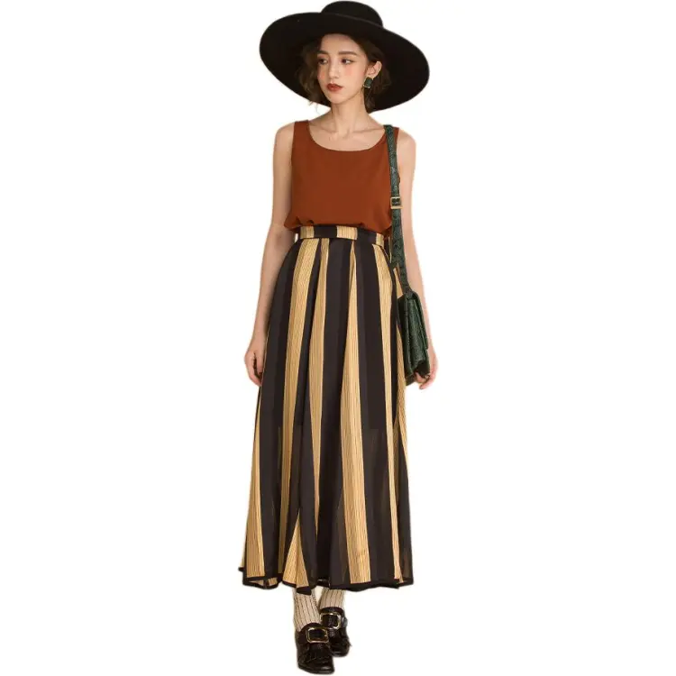 DEAR DEER PUFF 캐주얼 롱 기장 스커트 여성 블랙