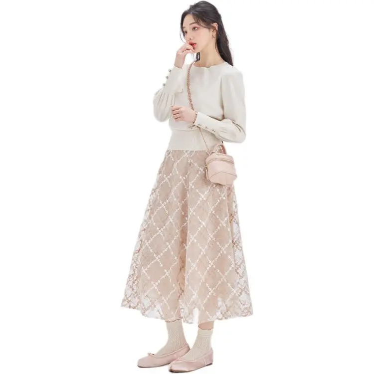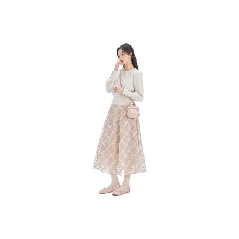 DEAR DEER PUFF 캐주얼 롱 기장 스커트 여성 이미지 컬러 - POIZON