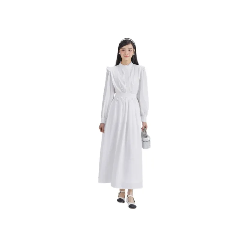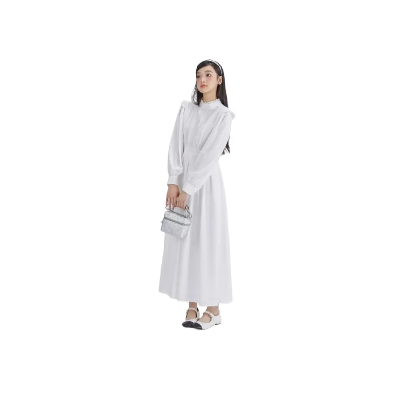 DEAR DEER PUFF 화이트 여성 긴팔 원피스 - POIZON