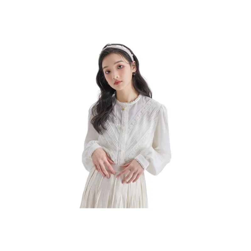 DEAR DEER PUFF 블라우스 여성 플로럴 애프리콧 버드 - POIZON