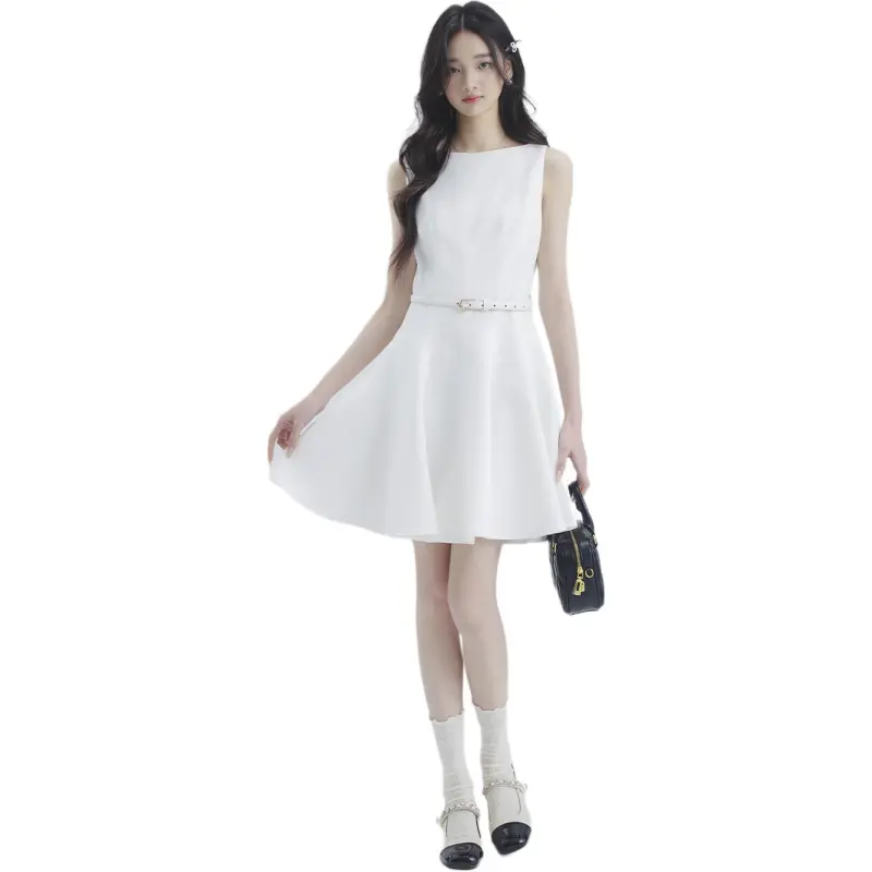 DEAR DEER PUFF 화이트 여성 민소매 원피스 - POIZON