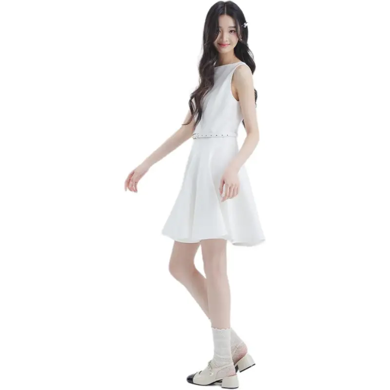 DEAR DEER PUFF 화이트 여성 민소매 원피스