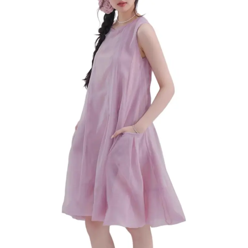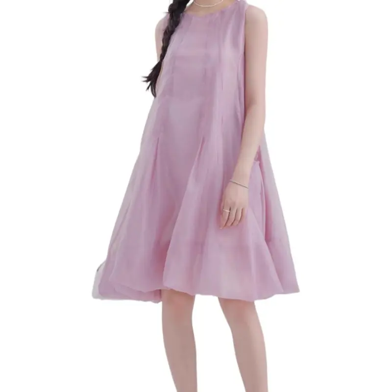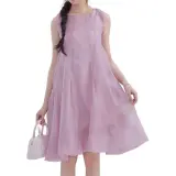 DEAR DEER PUFF 민소매 원피스 여성 핑크빛 퍼플