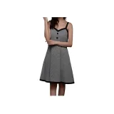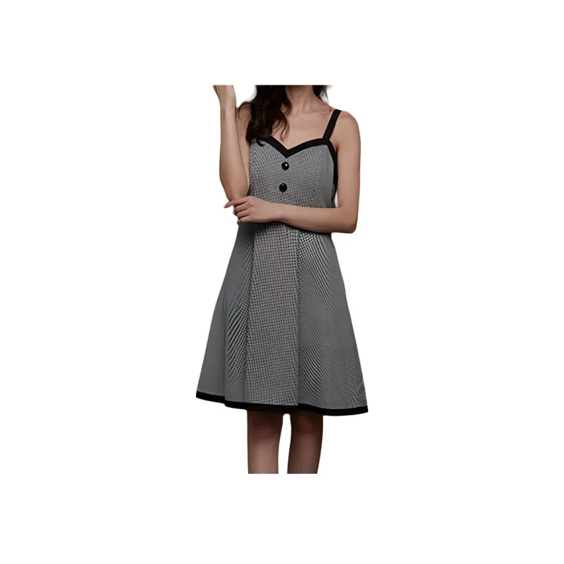 DEAR DEER PUFF 슬립 드레스 여성 블랙 화이트 체크 - POIZON