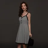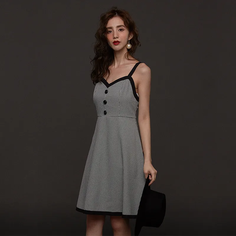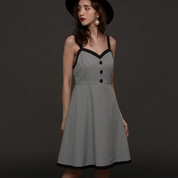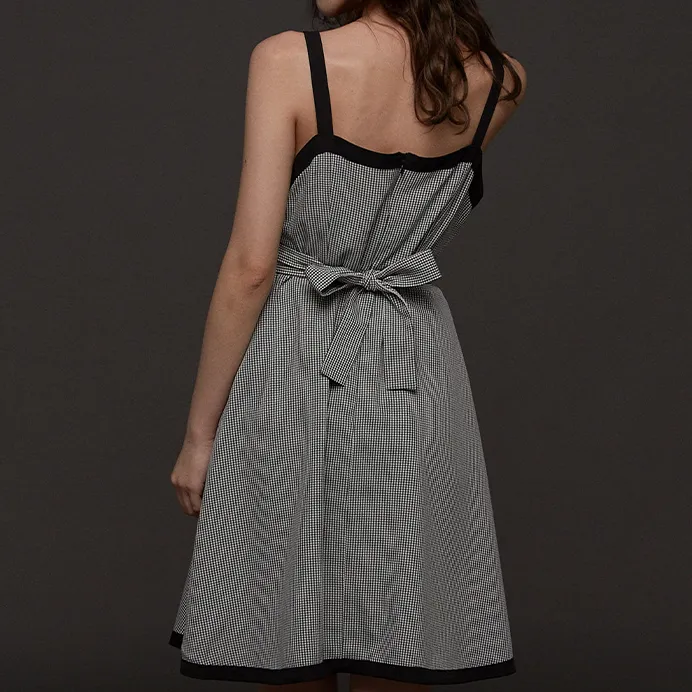 DEAR DEER PUFF 슬립 드레스 여성 블랙 화이트 체크