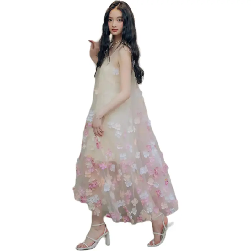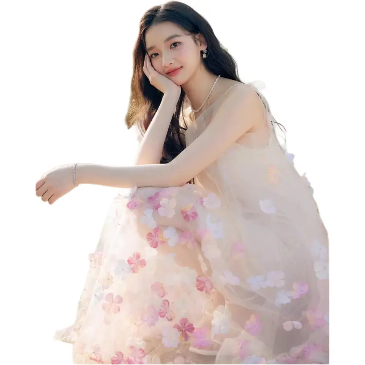 DEAR DEER PUFF 핑크 여성 슬립 원피스 - POIZON