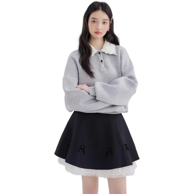 DEAR DEER PUFF 그레이 여성 맨투맨 - POIZON