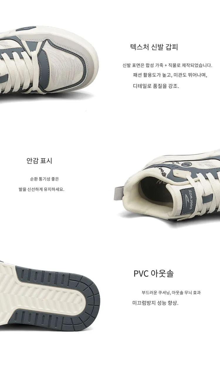 DEERWAY 하이탑 스케이트보드 신발 남성 화이트 그레이 블루