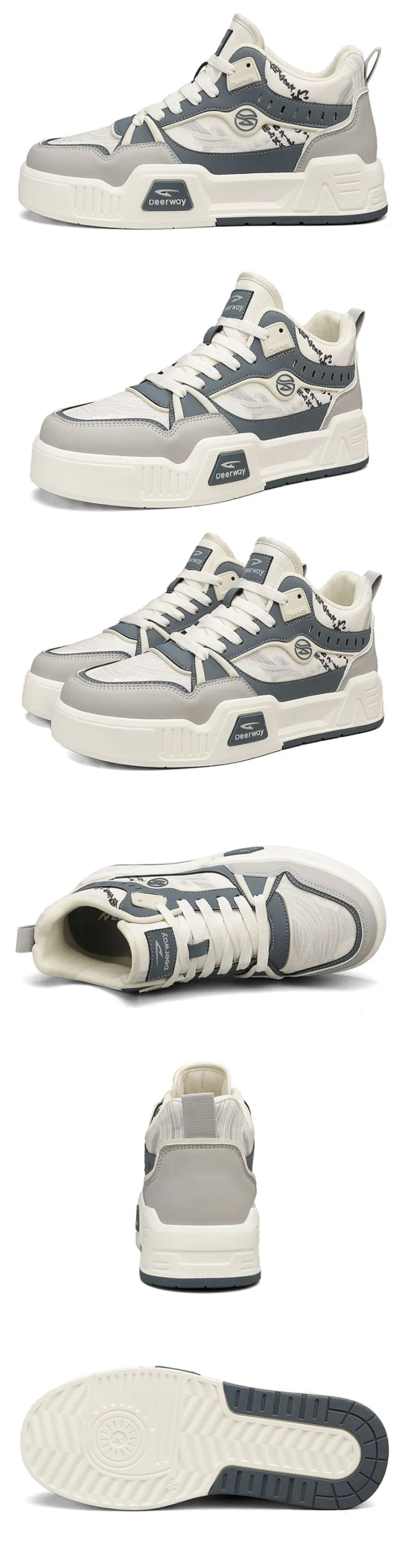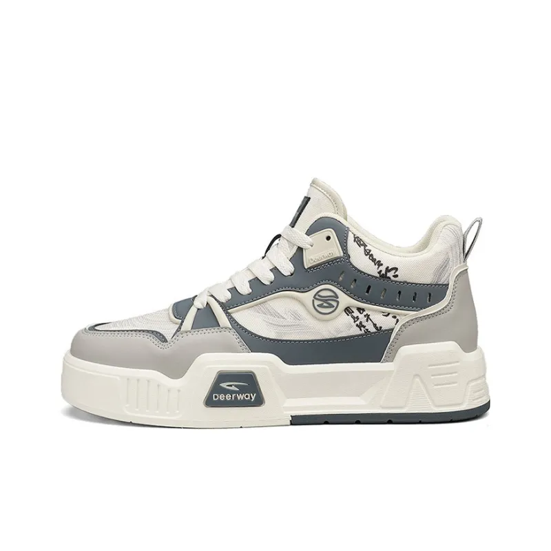 DEERWAY 하이탑 스케이트보드 신발 남성 화이트 그레이 블루 - POIZON