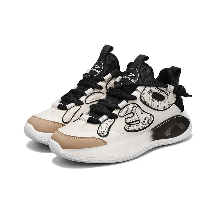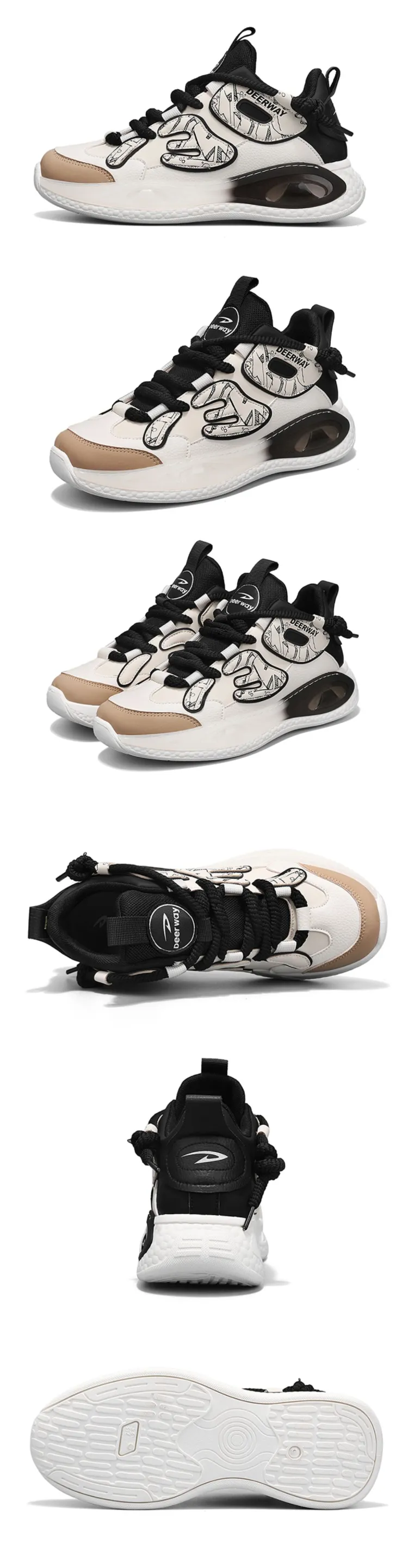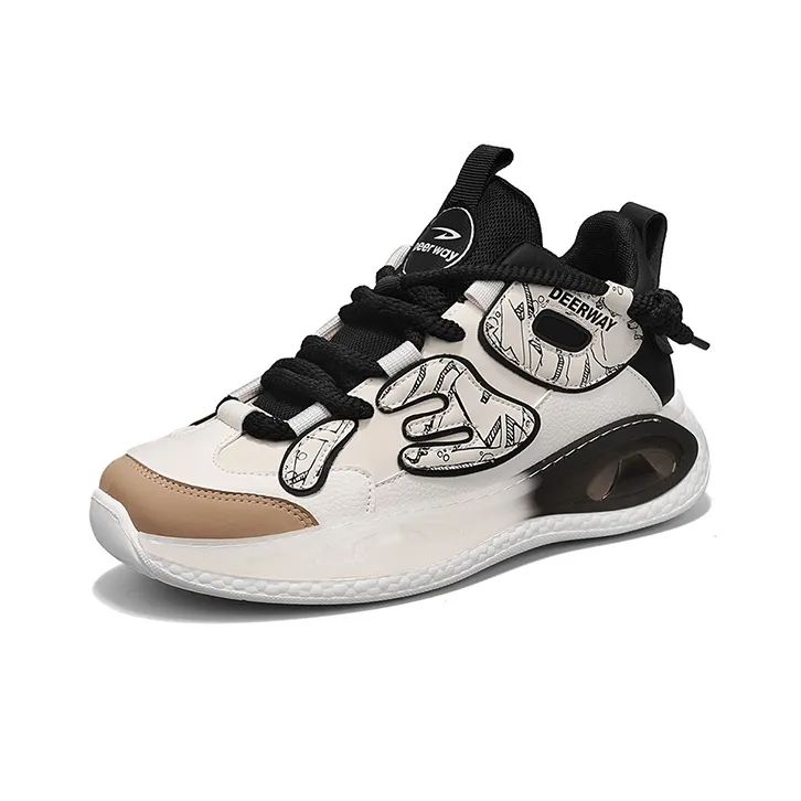 DEERWAY 미드탑 캐주얼화 남성 베이지 애프리콧 블랙 - POIZON