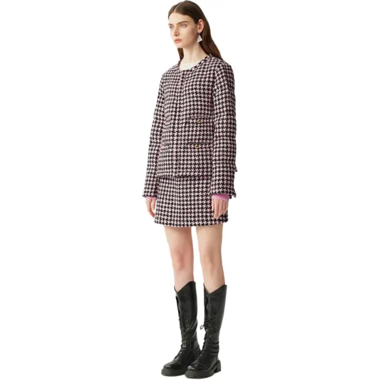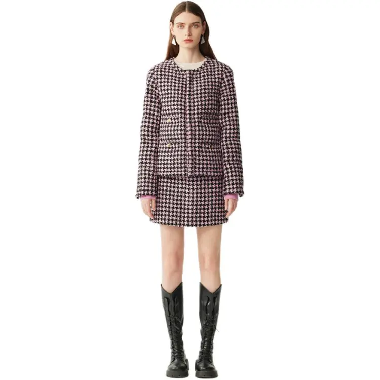 DEGAIA 라이트 핑크 체크 여성 다운 재킷 - POIZON