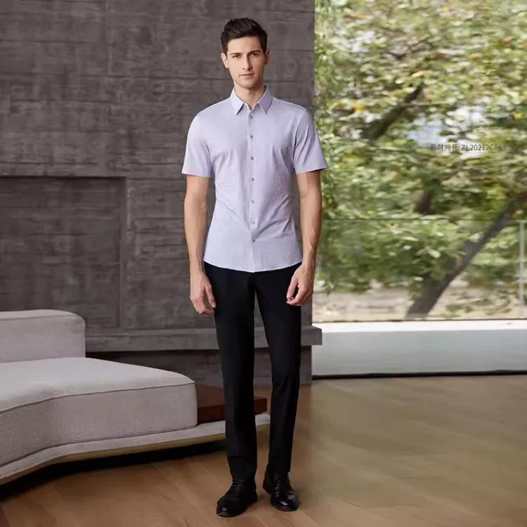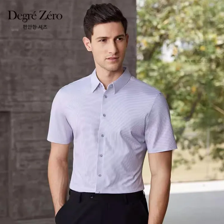 DEGRE ZERO 그레이 화이트 스몰 스트라이프 패턴 남성 셔츠 - POIZON