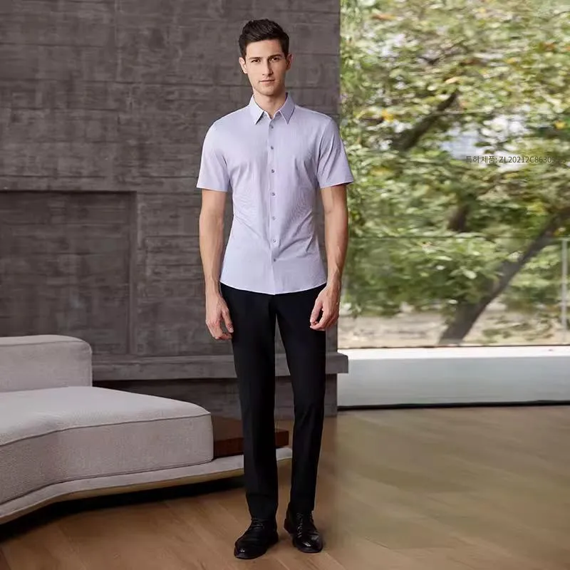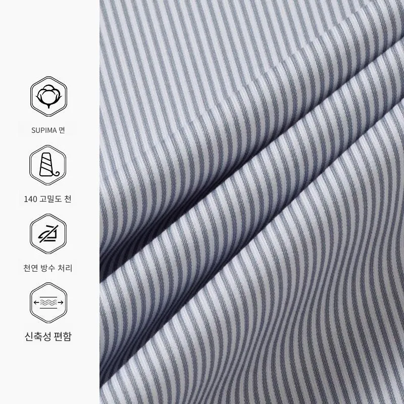 DEGRE ZERO 그레이 화이트 스몰 스트라이프 패턴 남성 셔츠