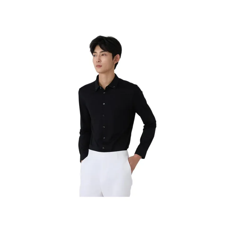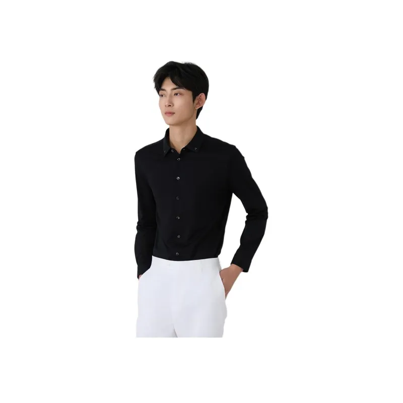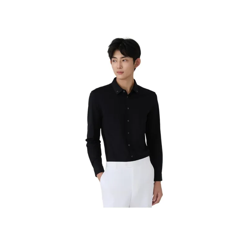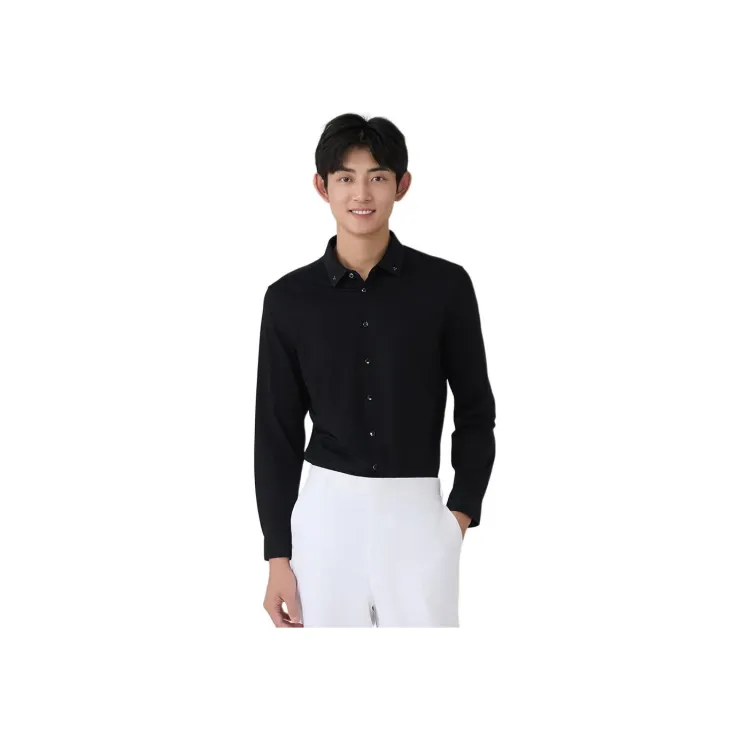 DEGRE ZERO 블랙 편안함 B 버전 미디엄 스퀘어 카라 남성 셔츠