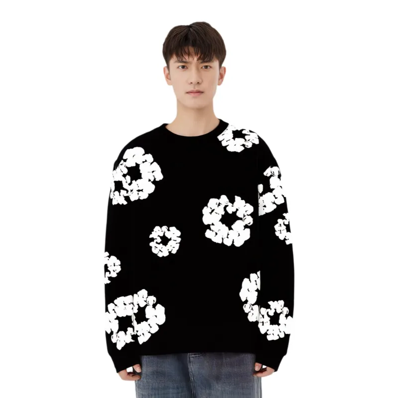 데님 티어스 롱슬리브 코튼 리쓰 티셔츠 블랙 - POIZON
