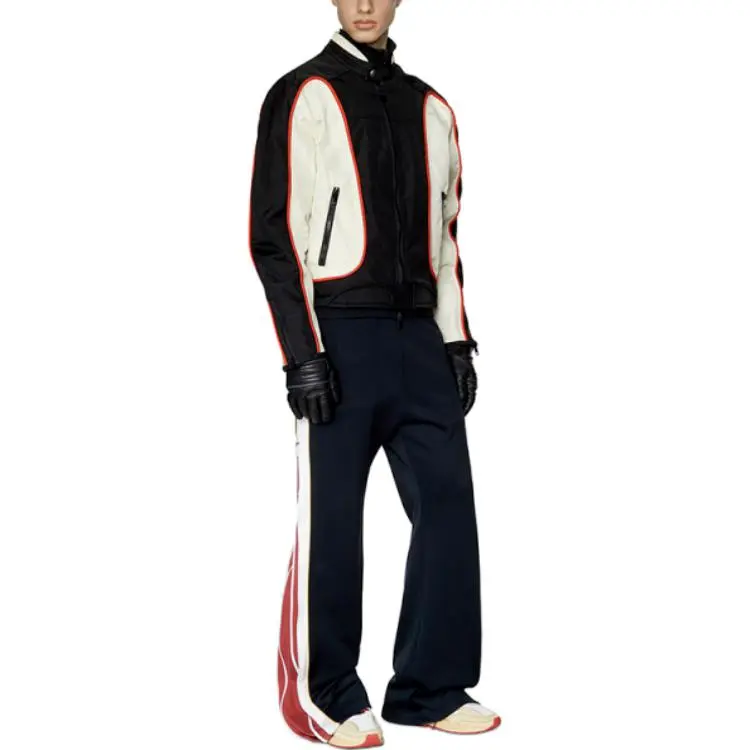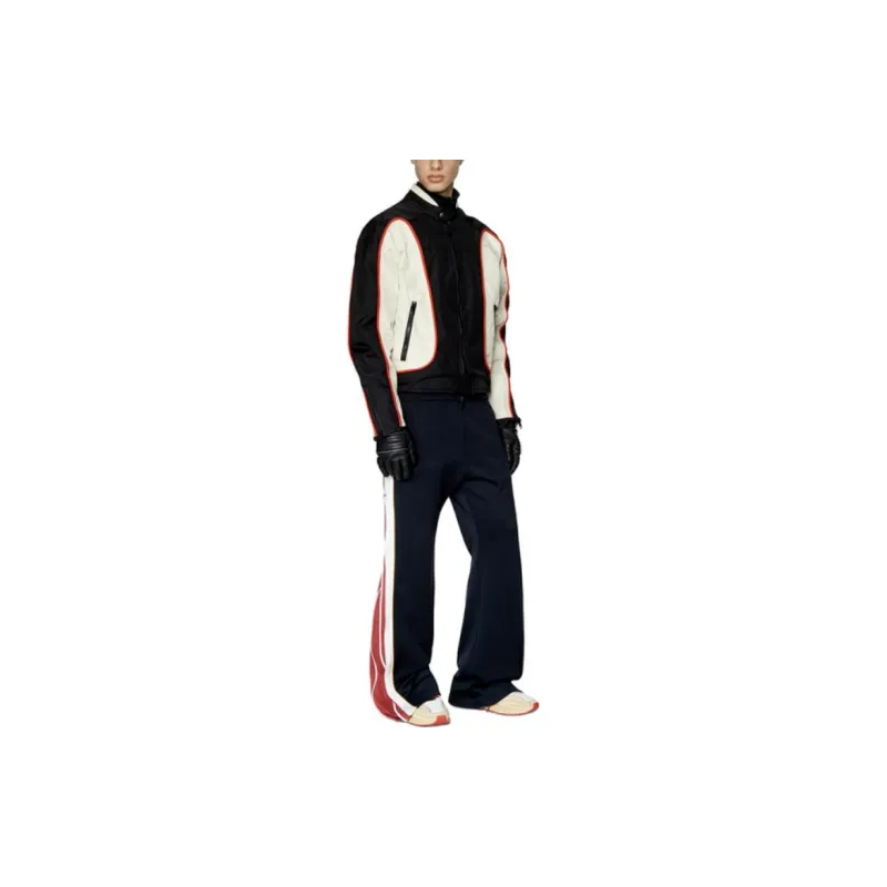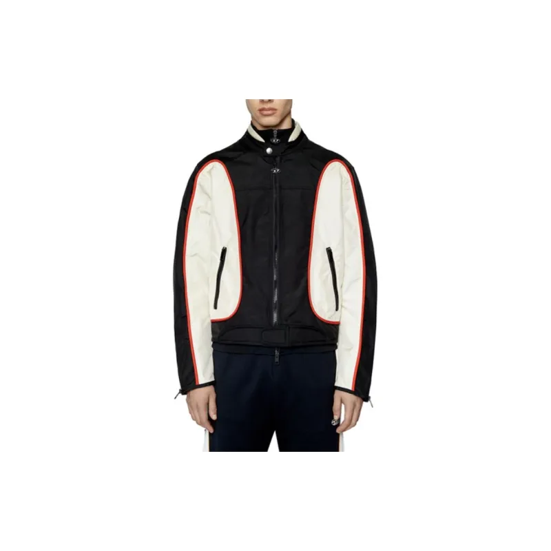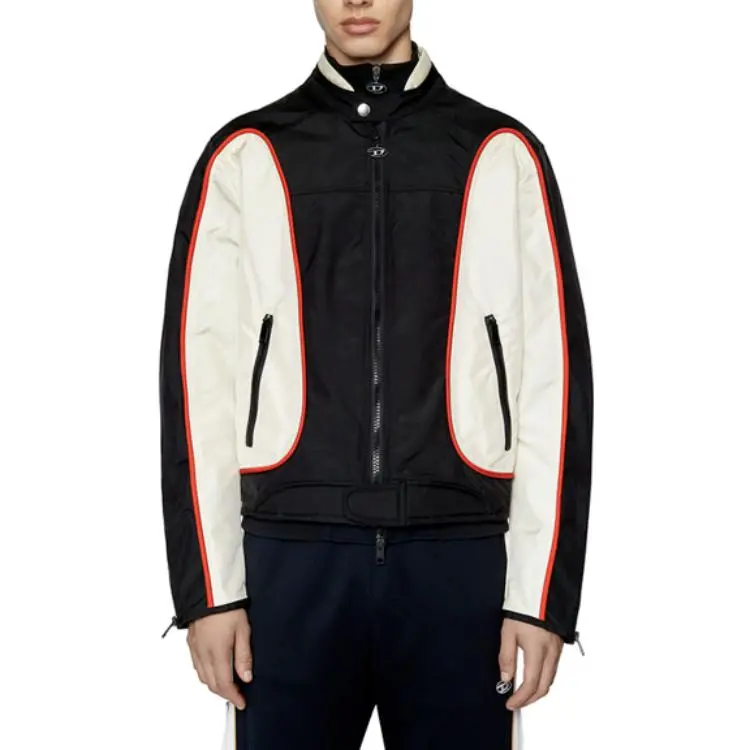 디젤 J-블링크 컬러블록 나일론 바이커 자켓 블랙 화이트 - POIZON