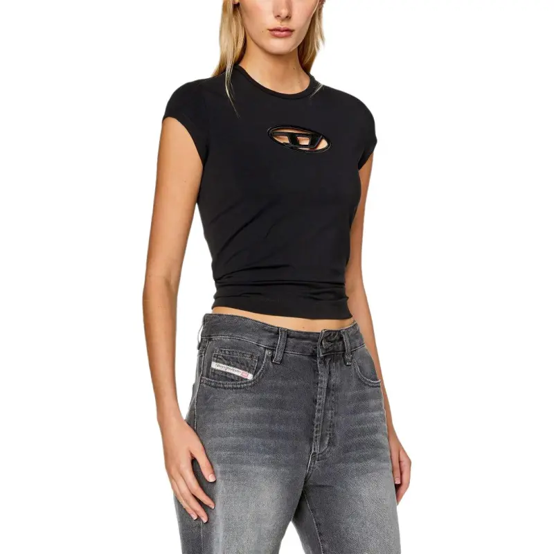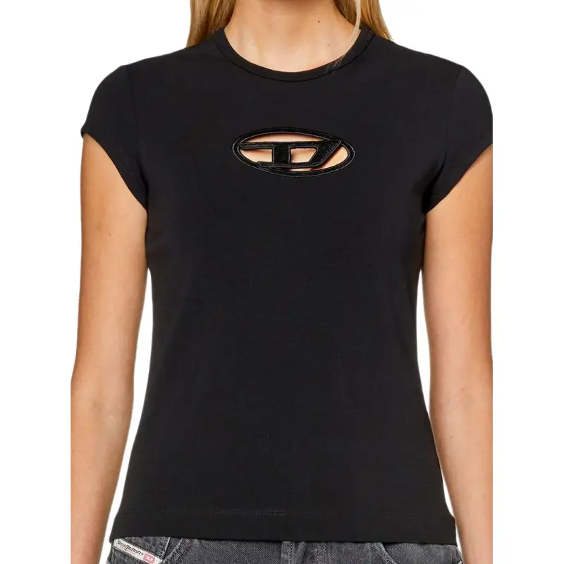 (W) 디젤 T-안지 피카부 로고 티셔츠 블랙 - POIZON