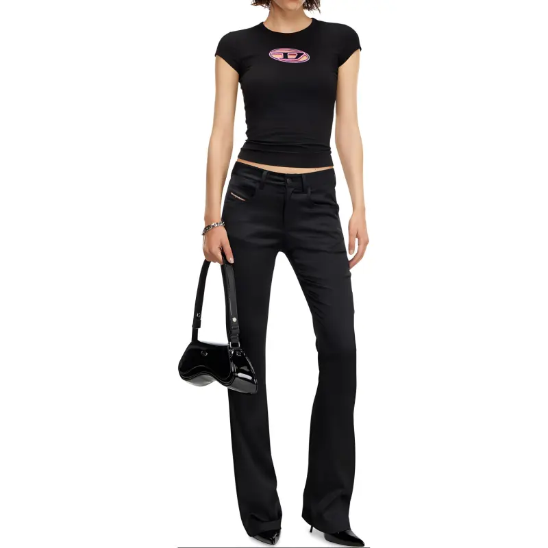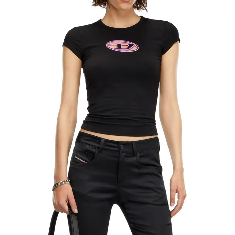 (W) 디젤 T-안지 피카부 로고 티셔츠 블랙 핑크 - POIZON