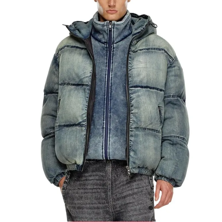 디젤 트리티드 데님 퍼퍼 자켓 블루