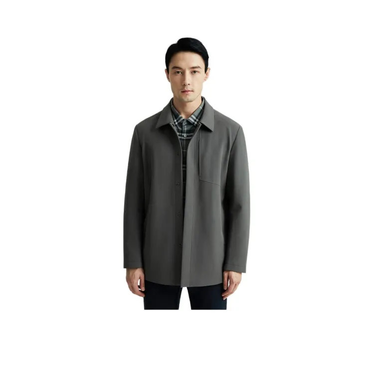 DIKENI 카키 그레이 남성 트렌치 코트 - POIZON