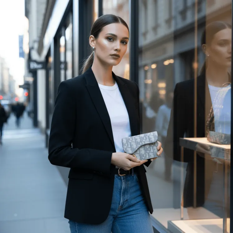 디올 새들 플랩 카드 홀더 그레이 디올 오블리크 자카드