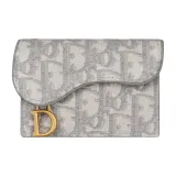 디올 새들 플랩 카드 홀더 그레이 디올 오블리크 자카드 - POIZON