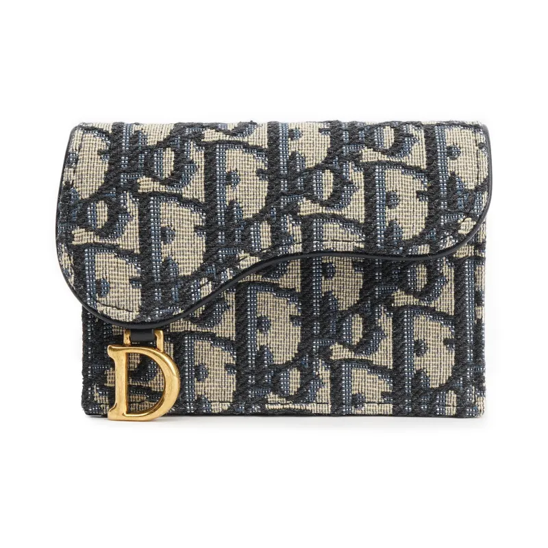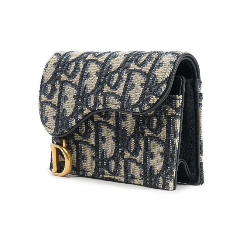 디올 새들 플랩 카드 홀더 블루 디올 오블리크 자카드 - POIZON