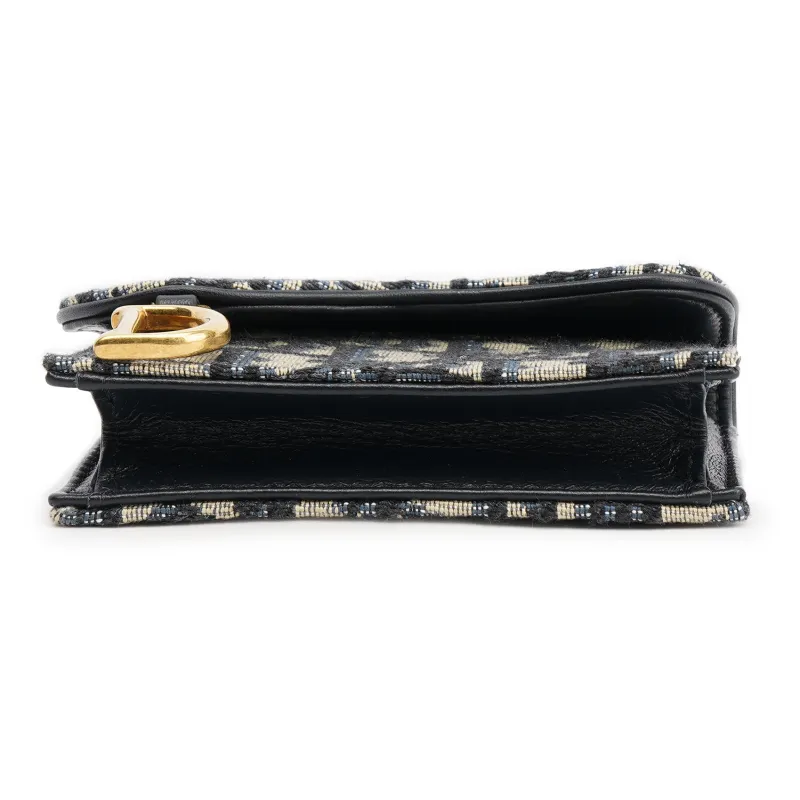 디올 새들 플랩 카드 홀더 블루 디올 오블리크 자카드